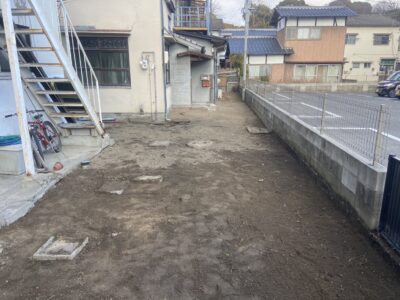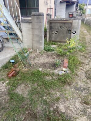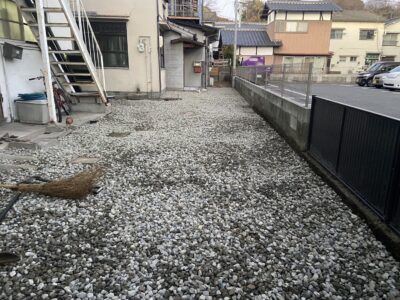 広島県広島市江波 ブロック除去 防草シート 砂利仕上げ